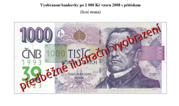ČNB bude v příštím roce slavit 30 let od svého vzniku. U příležitosti tohoto výročí rozhodla bankovní rada ČNB o vydání bankovek 1000 Kč vzoru 2008 s přítiskem, které budou doplňovat emisi bankovek 1000 Kč vzoru 2008. Celkově bude vydáno 200 tisíc takových speciálních bankovek. Bankovky by měly jít do oběhu 8. února 2023.