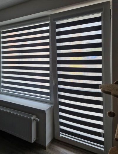 - Rolety den a noc – střídají se na nich průsvitné a neprůsvitné pruhy, takže můžete dokonale regulovat propustnost světla. Opět je seženete i v luxusní variantě (vyrobené z látky s vyšší gramáží). Cena rolet den a noc obvykle bývá vyšší než u standardních rolet.